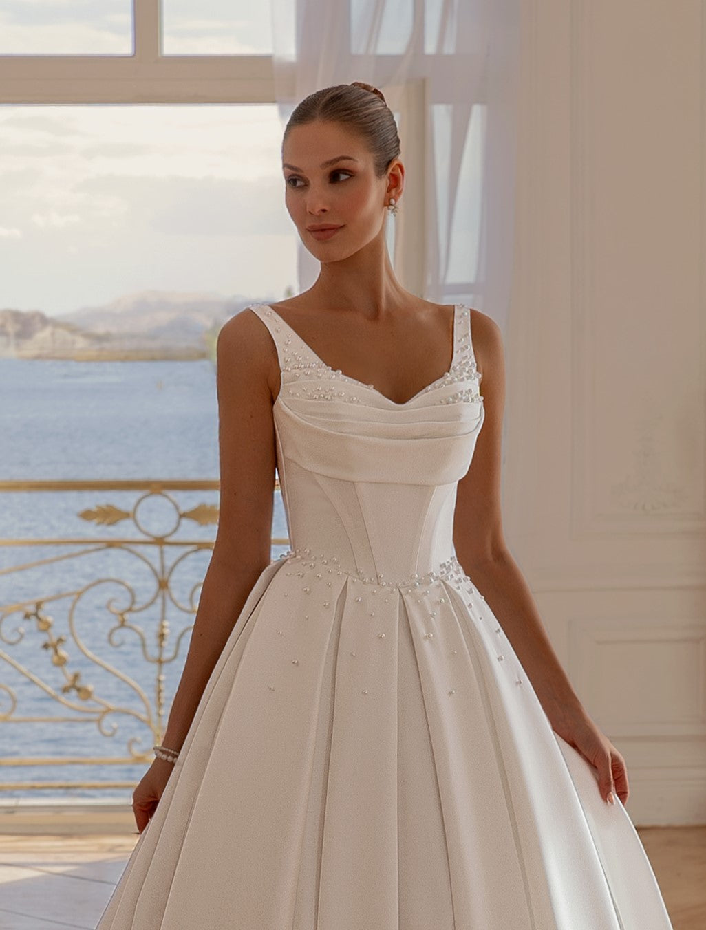 mikado ball gown wedding dress, pearl embellished bridal gown, corset back satin wedding dress, classic princess bridal gown, structured mikado gown, royal ball gown wedding dress, satin pleated bodice gown, elegant luxury wedding dress, timeless mikado bridal gown, modern classic wedding gown, robe de mariée mikado perles, vestido de novia mikado con perlas, abito da sposa mikado perle, mikado saten gelinlik, korsajlı mikado gelinlik, فستان زفاف ميكادو لؤلؤي, ミカドサテン ウェディングドレス, 米卡多缎婚纱