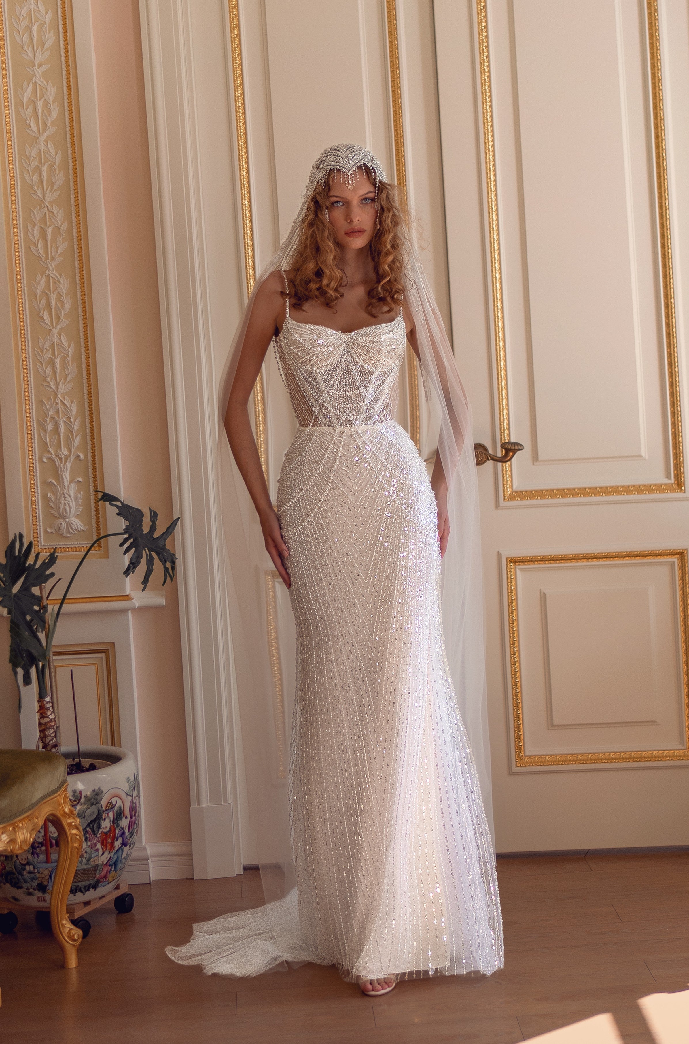 beaded lace wedding dress, crystal veil bridal gown, sheath beaded bridal dress, sparkly lace wedding gown, sequin fitted wedding dress, glam bridal couture dress, modern beaded lace gown, shimmering bridal look, euro tulle crystal veil, elegant evening wedding gown, robe de mariée perlée, vestido de novia con cuentas, abito da sposa con perline e velo, boncuk işlemeli gelinlik, tül taşlı duvak, свадебное платье с бисером и фатой, فستان زفاف مرصع بالكريستال, ビーズのウェディングドレス, 水晶ヴェールの婚紗