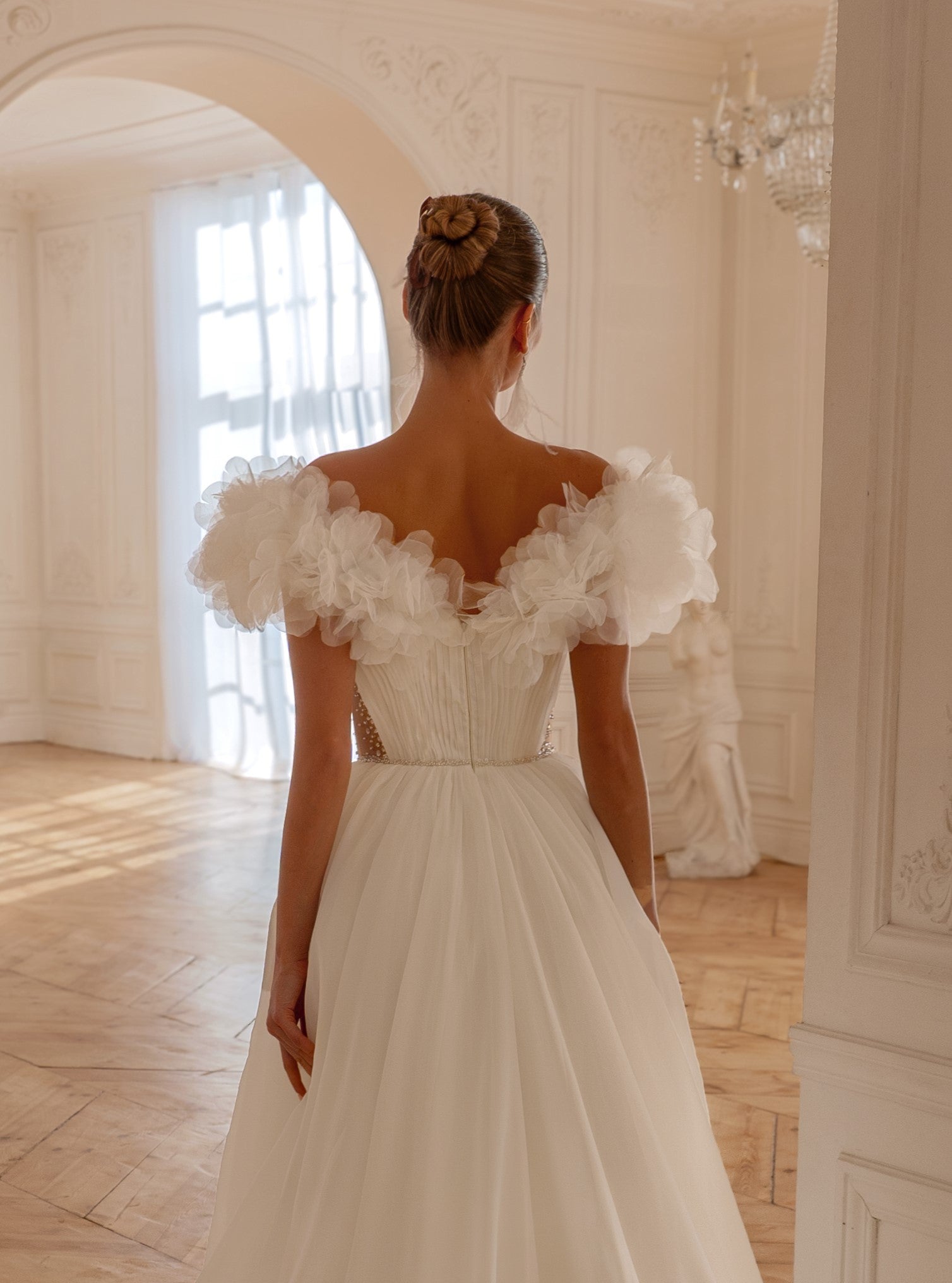 Floral Cloud Organza Off-Shoulder Wedding Dress | Celestia Couture