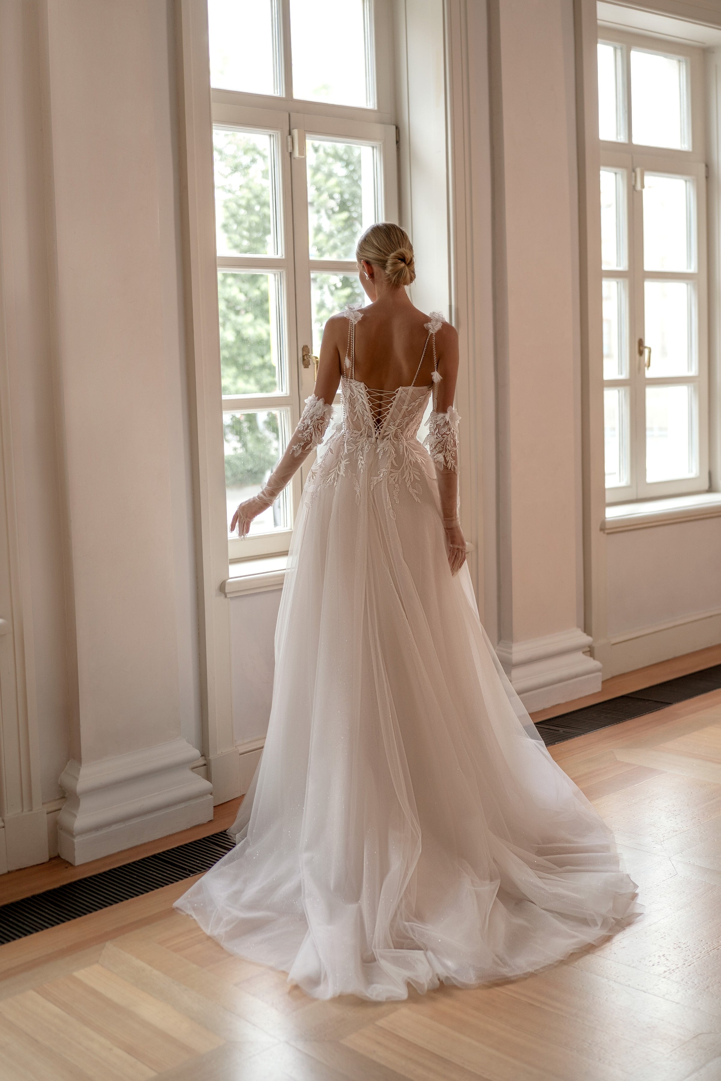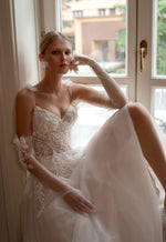 Discover the perfect blend of romance and versatility with our Gown. This enchanting gown features delicate spaghetti straps that enhance your shoulders and a flattering A-line silhouette that flows gracefully. The exquisite floral lace detailing adds a touch of elegance, while the removable sleeves offer you the flexibility to transform your look effortlessly from ceremony to reception. Ideal for the modern bride who appreciates both beauty and practicality, this gown ensures you’ll shine on your special day!
